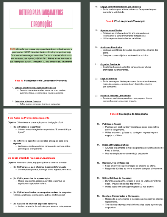 ROTEIRO PARA PROMOÇÕES E LANÇAMENTOS